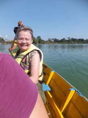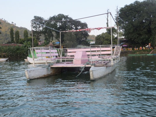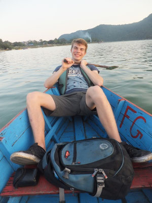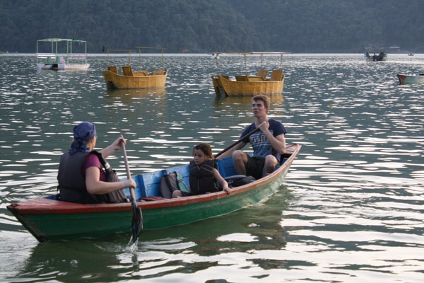 Anschließend ging es wieder nach unten und zurück über den See, Miriam hat das Bootfahren so gut gefallen dass Onno und ich sie dann nochmal auf eine Seerundfahrt mitgenommen haben. Jedenfalls war das der Plan, aber sobald wir auf dem Wasser waren haben wir uns mehr damit beschäftigt uns mit Seerosen zu bewerfen und Japaner auf dem See zu beobachten. Unser Highlight war ein Boot mit drei Passagieren, die alle auf ihrem Smartphone rumtippten und dabei gar nicht gemerkt haben, dass sie mit vollem Schwung ein verankertes Tretboot gerammt haben… Also wie man sieht, in Pokhara haben vor allem unsere „Mittouristen“ für Unterhaltung gesorgt :-).